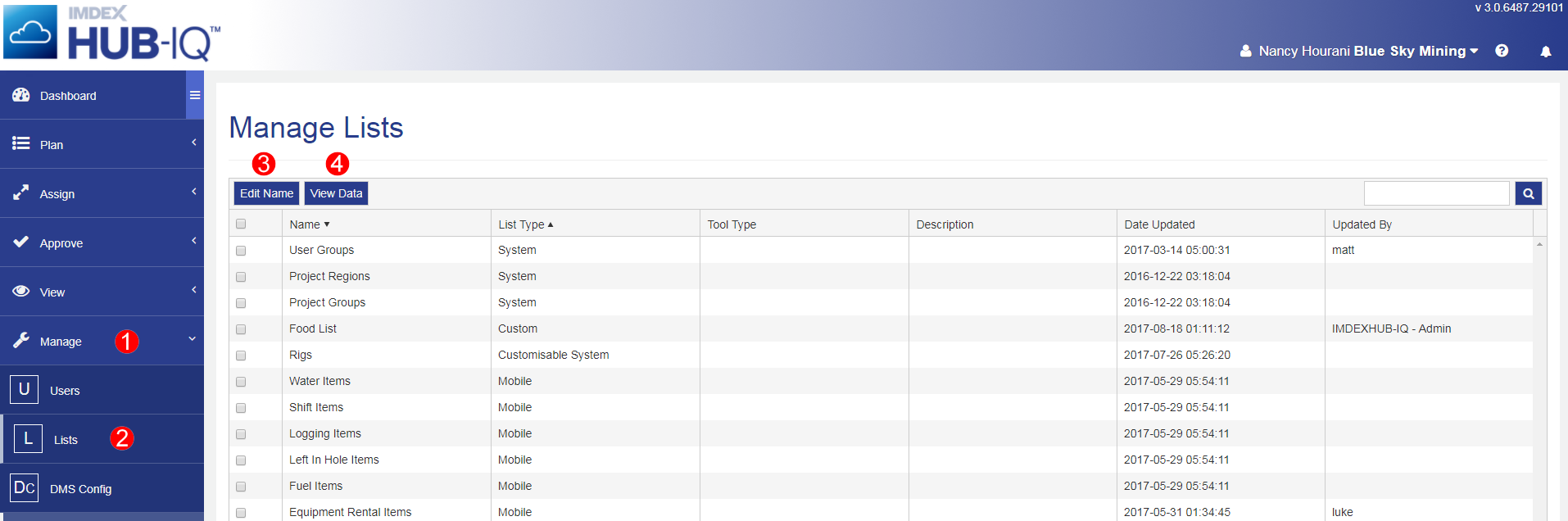 The Manage Lists module is the administration function for geologists to modify lists of data.